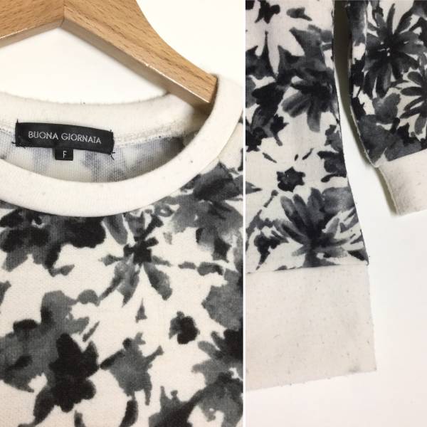 ★ BUONA GIORNATA 花柄 モノクロ プルオーバー トレーナー F