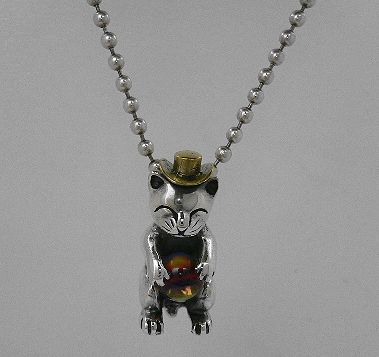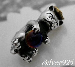 シルバー925銀の猫スマイル キャット ペンダント/オーロラ水晶