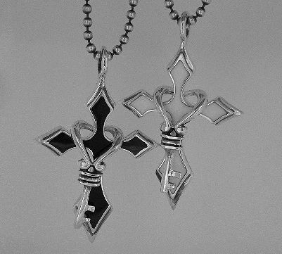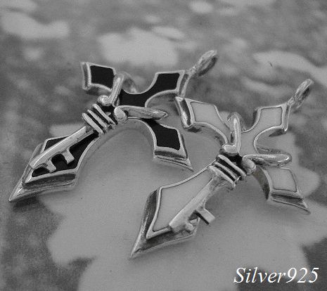 シルバー925銀のハート キー鍵 ハンギングクロス十字架ペア ペンダント2個set