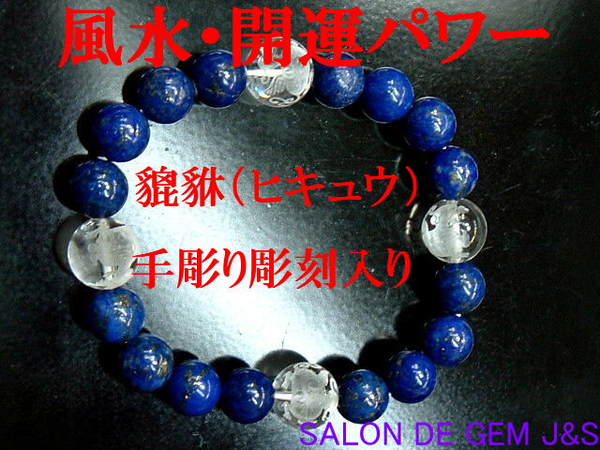 【送料無料】【貔貅彫刻】【金運/財運】【高級天然ラピスラズリ(瑠璃)/天然クリスタル 風水・開運ブレスレット】12.0-10.0mm/17cm