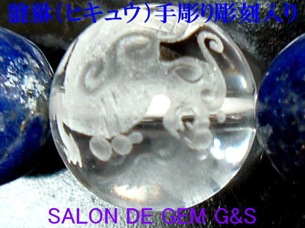 【新品】【貔貅(ヒキュウ)】【金運・財運】【高級天然本ラピスラズリ&貔貅(ヒキュウ)手彫り彫刻入り天然クリスタル