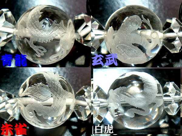 【新品】【風水・四神彫刻入り】【超高級天然クリスタル&ブラックオニキス 風水・開運ブレスレット】【C 12.0mm/7.0mm/O 12.0mm】【青龍・玄武・朱雀・白虎】(内径:約16cm)【浄化済商品】【赤字大処分】【本数限定】【収納ポーチ付】【製作元オークション】