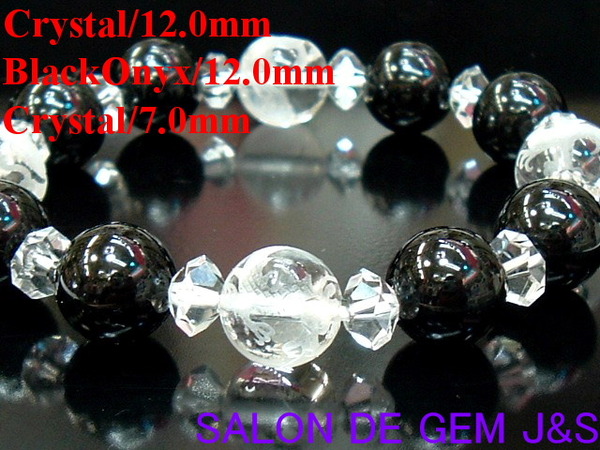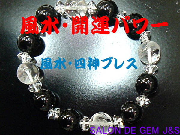 【風水:四神彫刻】【高級ブラックオニキス/天然クリスタル 風水・2025年開運ブレスレット】12.0-7.0mm/16cm前後