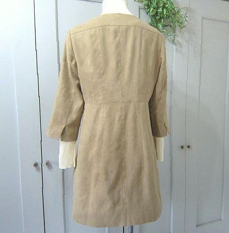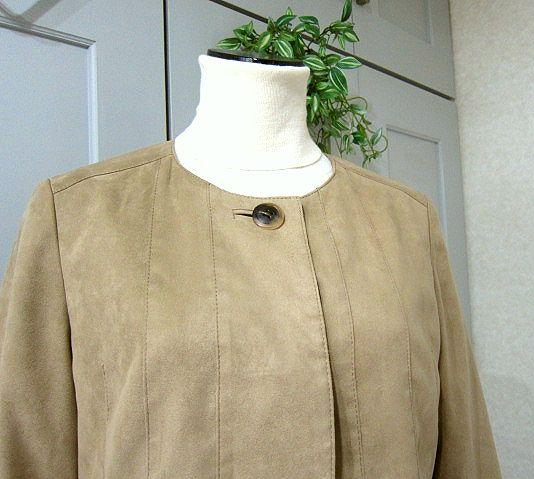 自由区 スエードタッチ ノーカラー 比翼前ボタン開き 両袖口スリット入(約7cm) スペアボタン付