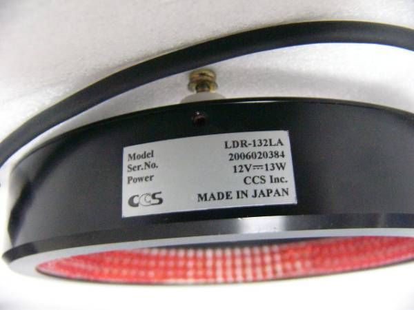 写真の通り、CCS/シーシーエス社 画像処理用 大型リング型ローアングル赤LED照明 LDR-132LA 12V-13Wの中古動作保証品です。