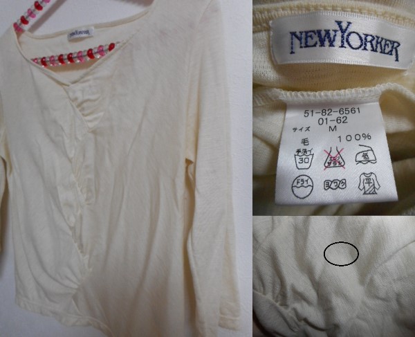 NEWYORKER ニューヨーカー ウール七分袖薄手ニット キナリ色 M | |||