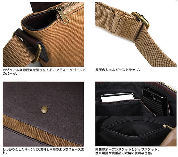 | ミニショルダーバッグ 何かと使えるミニショルダー☆ しっかりとしたキャンバス素材と本革のような素材を組み合わせたカジュアルな雰囲気が◎! ちょっとした買い物やお出かけにピッタリです! [サイズ・容量] 【カラー】 ブラック、ダークブラウン、ネイビー 【サイズ】 縦35cm 横14.5cm マチ幅12cm ショルダーストラップ70cm~133cm 【素材】 キャンバス ポリウレタン [規格] | |