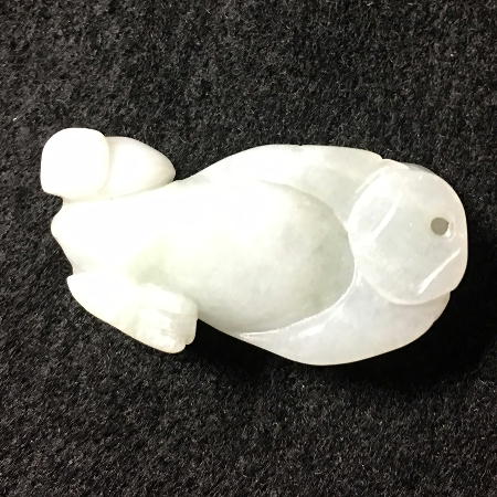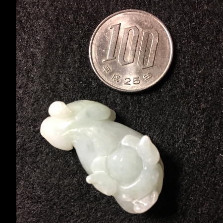 白玉(上質翡翠)に縁起物の貔貅(ヒキュウ)をモチーフに彫った玉石細工です。