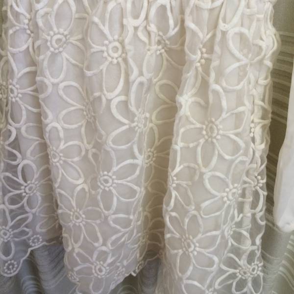 クリーム系のお色で、シフォン風の生地が優しい雰囲気のお品になります。