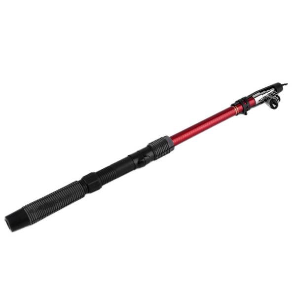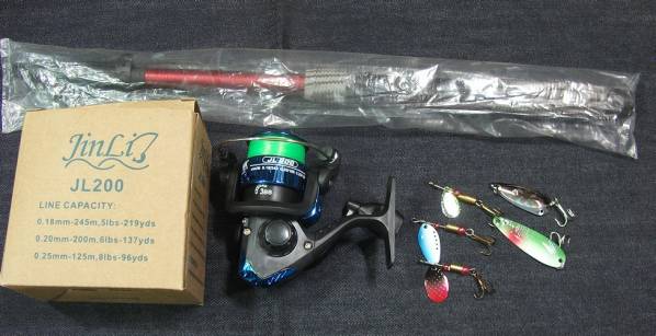 全長1.8m仕舞寸45cmのコンパクトロッドと小型スピニングリール(ラインキャパシティ0.18mm-245m・0.2mm-200m・0.28-125m、サイズ約12cm×12cm)のセットです。