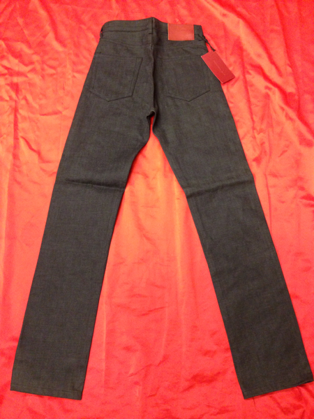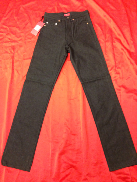 ゴワゴワ感のある細身のノンウオッシュジーンズで、裾はチェーンステッチになっており、耳も付いています☆