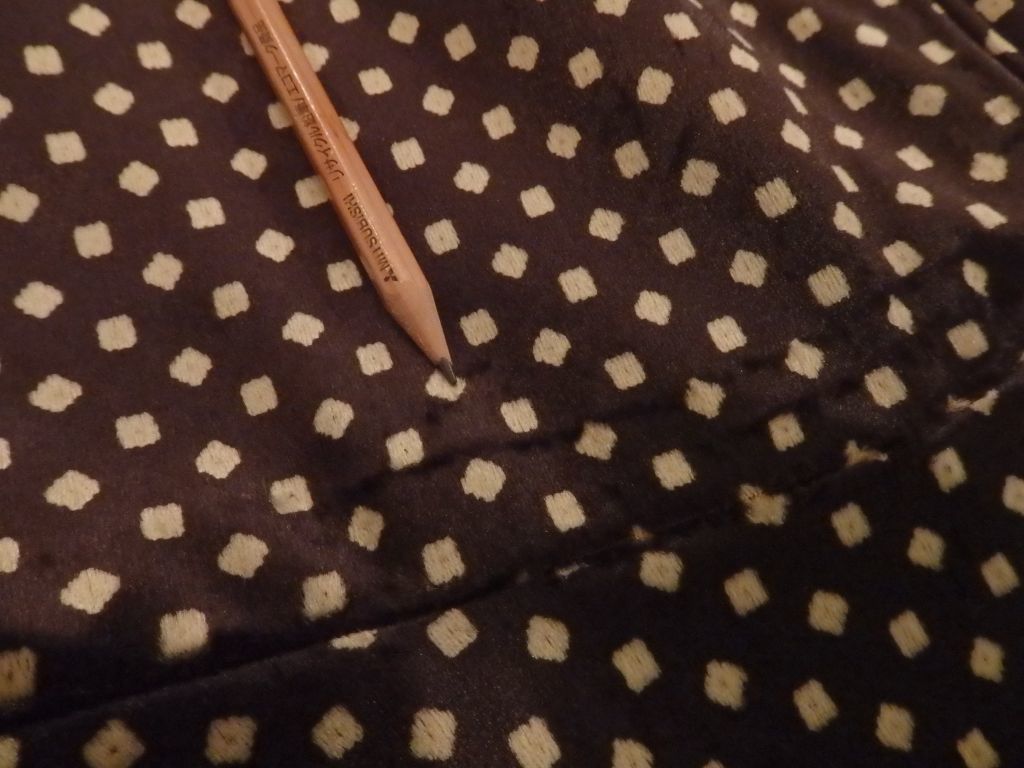 四角に近い珍しいドット柄のシルクベルベット地が贅沢かつユニーク