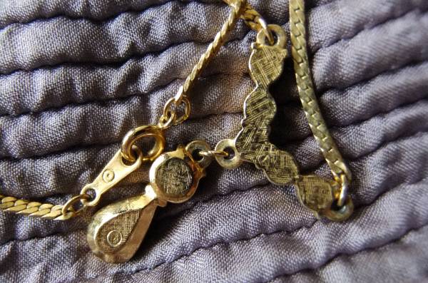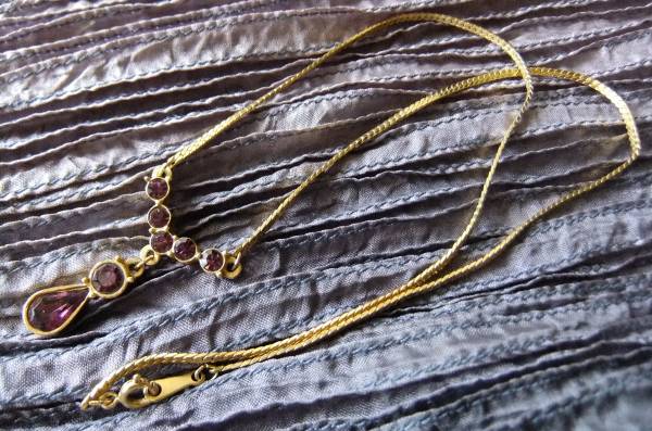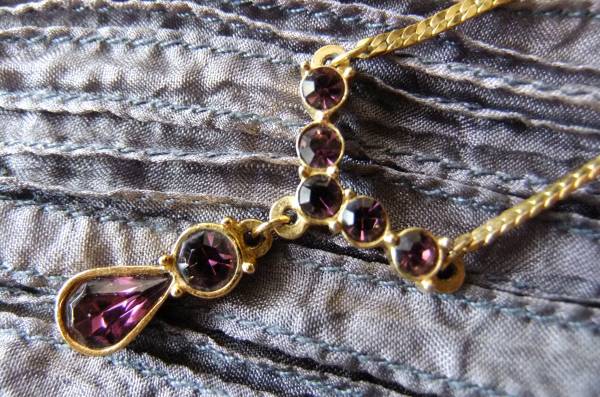 ヴィンテージ品、円の中に小さな点の付いた刻印が入ったパープルカラーストーンのネックレス。