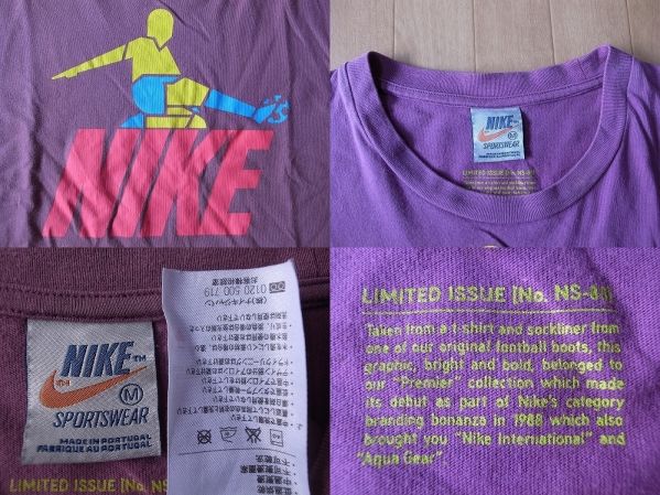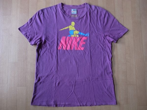 00's NIKE ホワイトレーベル サッカー Tシャツ Mパープル系 ナイキ オレンジ スウォッシュ 半袖 カットソー 風車 筆記体NSW BRSスポーツW杯