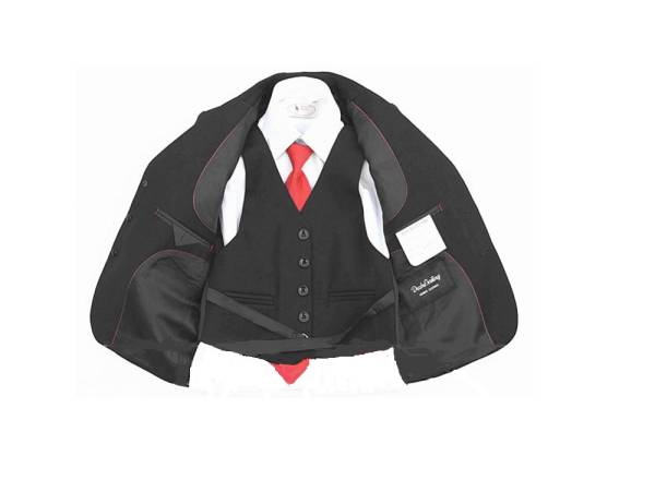 サイズ:100㎝~105㎝ ジャケット ベスト ズボン+赤い蝶ネクタイ(シャツはついていません) ジャケット:ポケット外側 2+胸ポケット1、内側ポケット2(しつけをはずす) ベスト:ポケット 2、 ズボン:左右1、バックポケット1 ズボンは前ファスナー、ウエストはアジャスター付きで約10㎝サイズが移動できます 素材:100%ポリエステル、裏地付 色:黒無地 オーダーメイドのような仕上がりで小さな紳士は注目の的 ズボンのすそはご自分のお子様に合わせて裾上げしてください。 スーツカバー、ハンガーついてます 注・お洗濯は手洗い30度のぬるま湯で軽く洗い、陰干ししてください。 またはクリーニング店へ。 送料1100円 | ||||
