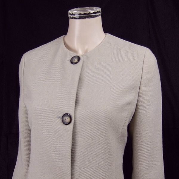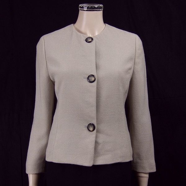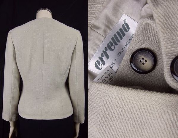 ![]() ![]() 落札後はオークション終了のお知らせメールに出品者からのメッセージが御座います。 自己紹介欄には急な休み等の記載をする場合が御座いますので一度お目通し頂きます様お願いいたします。ご一読の上オークション終了後2日以内の連絡、 落札後4日以内のご入金のお約束を守って頂ける方のご入札をお待ちしております。 小さい子供がおりますのでお急ぎのお取引を希望される方のご入札は遠慮下さいませ。 ---↓ここにブランド名記入---- ブランド名:erreuno エレウノ イタリア製 ---↓ここに特徴記入---- 特徴:気品あるイタリア製上質ジャケットです。淡いグレー系×ベージュ系×グリーン系の中間色♪凸凹斜め格子柄が上品!美形ラインの清楚ノーカラージャケットです。 ---↓ここにサイズ記入---- サイズ : 40 表示(トルソーは9号です) 実寸 肩幅39cm、身幅45cm、袖丈54cm、着丈57cm、ウエスト37cm、合わせ部3つボタン留 ---↓ここに素材記入---- 素材 : ウール(WO)100% 裏地 レーヨン(VI)100%