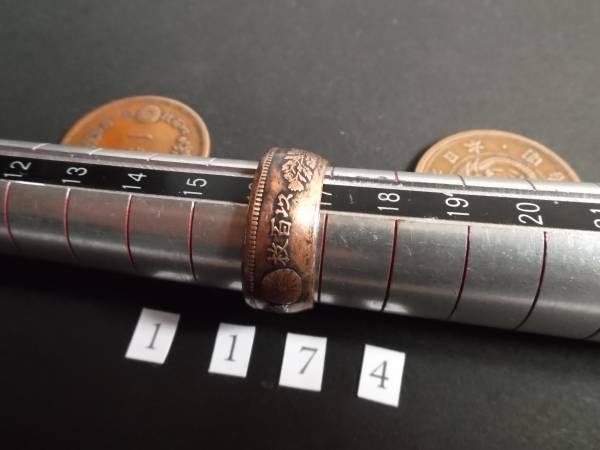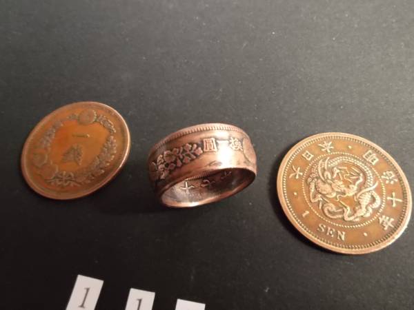 16号  コインリング  竜1銭銅貨  ハンドメイド指輪 送料無料 (1174)