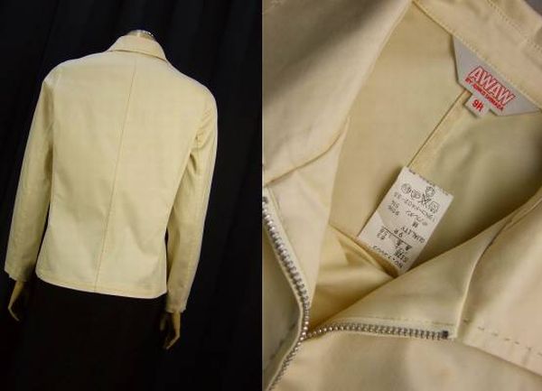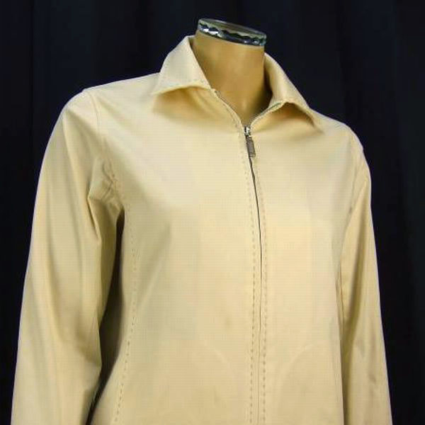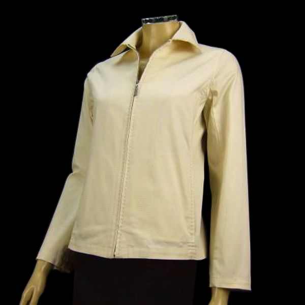 特徴:淡艶クリームベージュ系のストレッチジャケットです。滑らかで伸びよい薄手素材×薄茶ベージュ系ハンドステッチが施された素敵なジップジャケットです。 ---↓ここにサイズ記入----