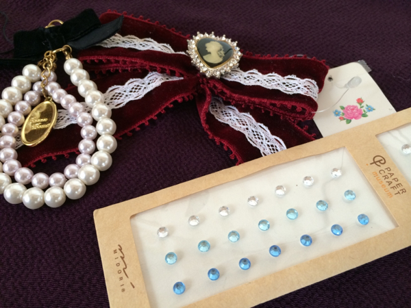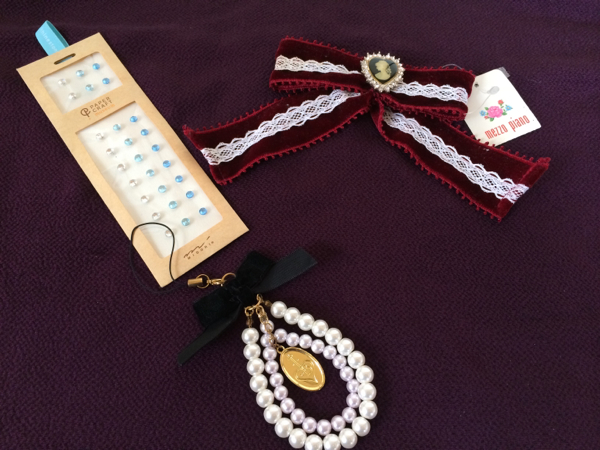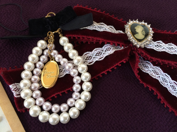 とても素敵な、アクセサリー3点、パールタイプストラップ(長さ約10cm)/カメオブローチ(約3×2.5cm)付きリボン/クリスタルガラス(台紙約15×5cm)となります!全て未使用ですが、新品ではありませんので、詳細はご了承ください!