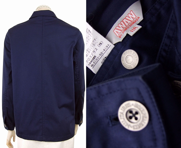 ![]() ![]() 落札後はオークション終了のお知らせメールに出品者からのメッセージが御座います。 自己紹介欄には急な休み等の記載をする場合が御座いますので一度お目通し頂きます様お願いいたします。ご一読の上オークション終了後2日以内の連絡、 落札後4日以内のご入金のお約束を守って頂ける方のご入札をお待ちしております。 小さい子供がおりますのでお急ぎのお取引を希望される方のご入札は遠慮下さいませ。 ---↓ここにブランド名記入---- ブランド名:JUNKO SHIMADA AWAW クロスプラス(株) ---↓ここに特徴記入---- 特徴:シルバーロゴ入りボタンがアクセントのジャケットです。艶ある明るい紺色系のストレッチコットン!シャリ感の凛としたジャケットです。 ---↓ここにサイズ記入---- サイズ : 11号 表示(トルソーは9号です) 実寸 肩幅40cm、身幅49.5cm、袖丈57cm、着丈64cm、ウエスト49cm、裾幅50、合わせ部5つボタン留、両サイドポケット ---↓ここに素材記入---- 素材 : 綿95% ポリウレタン5%