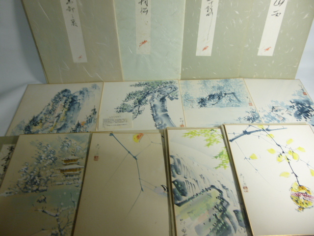 旧家から 佐野五風 日本画色紙 9枚揃え まとめて 山水風景雪景色柘榴等