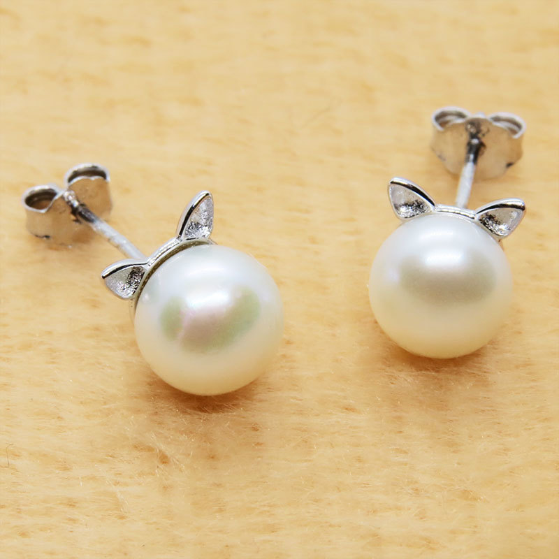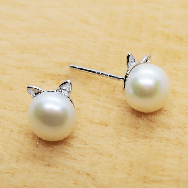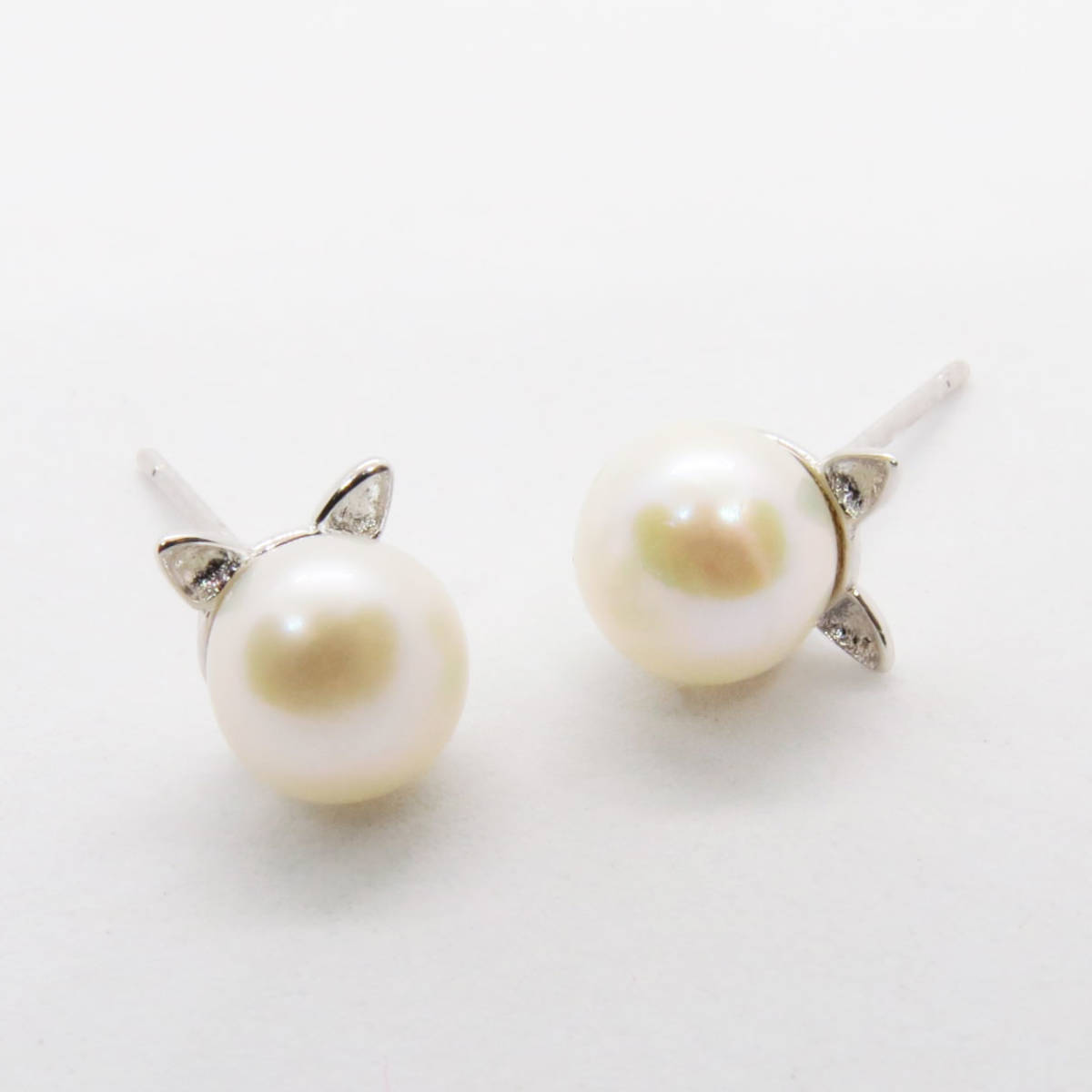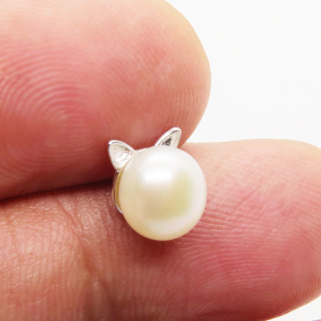 シンプルにさり気なく大人可愛い 猫耳パールピアス シルバー925 淡水パール