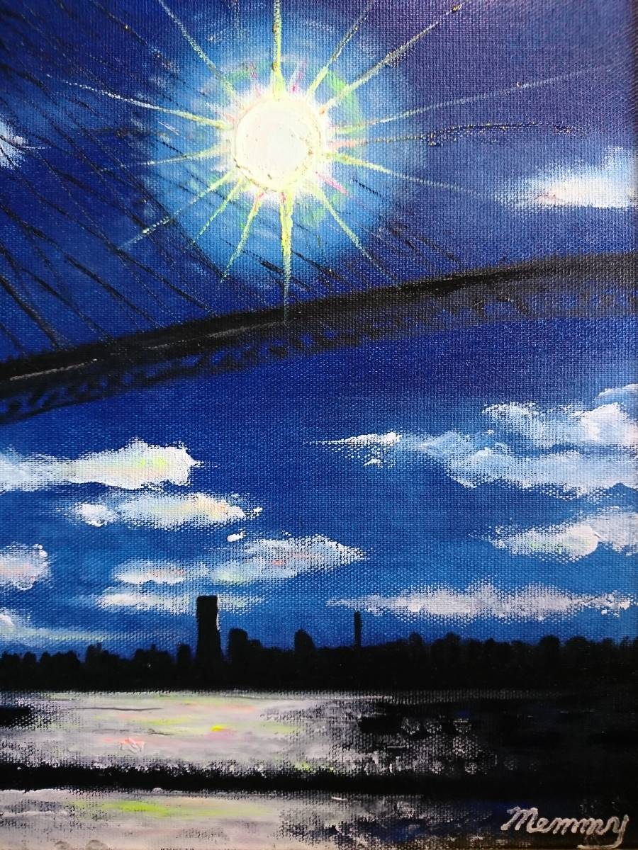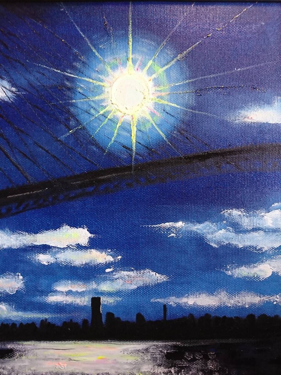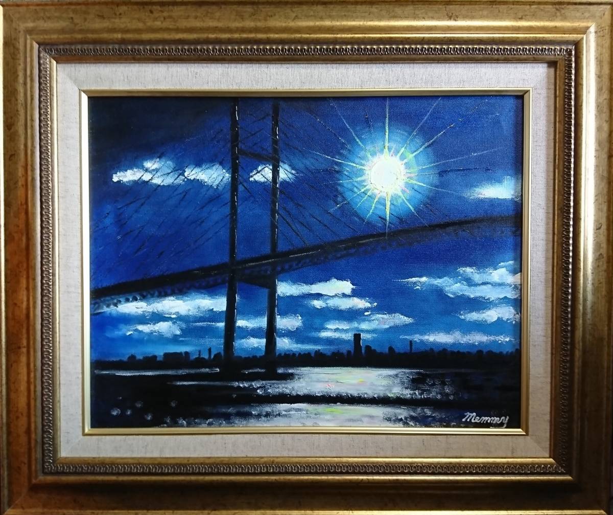 ≪国美協≫、佐藤めみ、『太陽とベイブリッジ』、油彩画、F6号:40,9×31,8cm、油絵一点物、新品高級油彩額付、直筆サイン・真作保証付