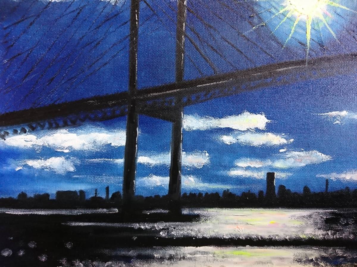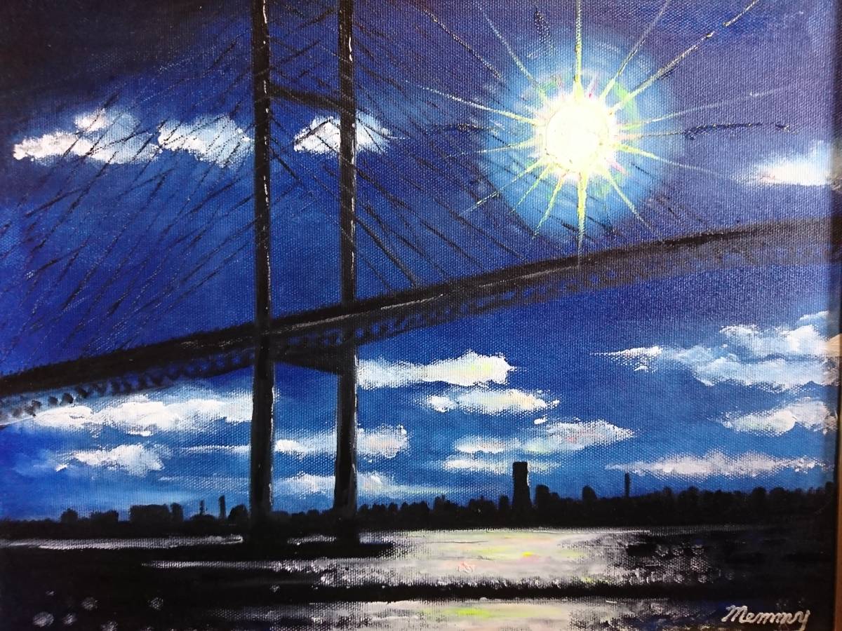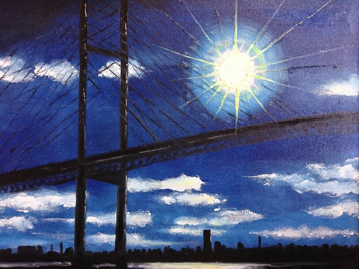 ≪国美協≫、佐藤めみ、『太陽とベイブリッジ』、油彩画、F6号:40,9×31,8cm、油絵一点物、新品高級油彩額付、直筆サイン・真作保証付
