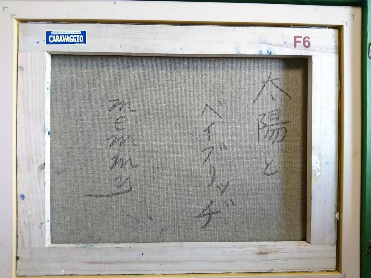 キャンパスの裏面にも、直筆サイン・題名の記載有り。貴賓のある繊細、色彩綺麗な油彩画です。絵画のコンデション良好です。