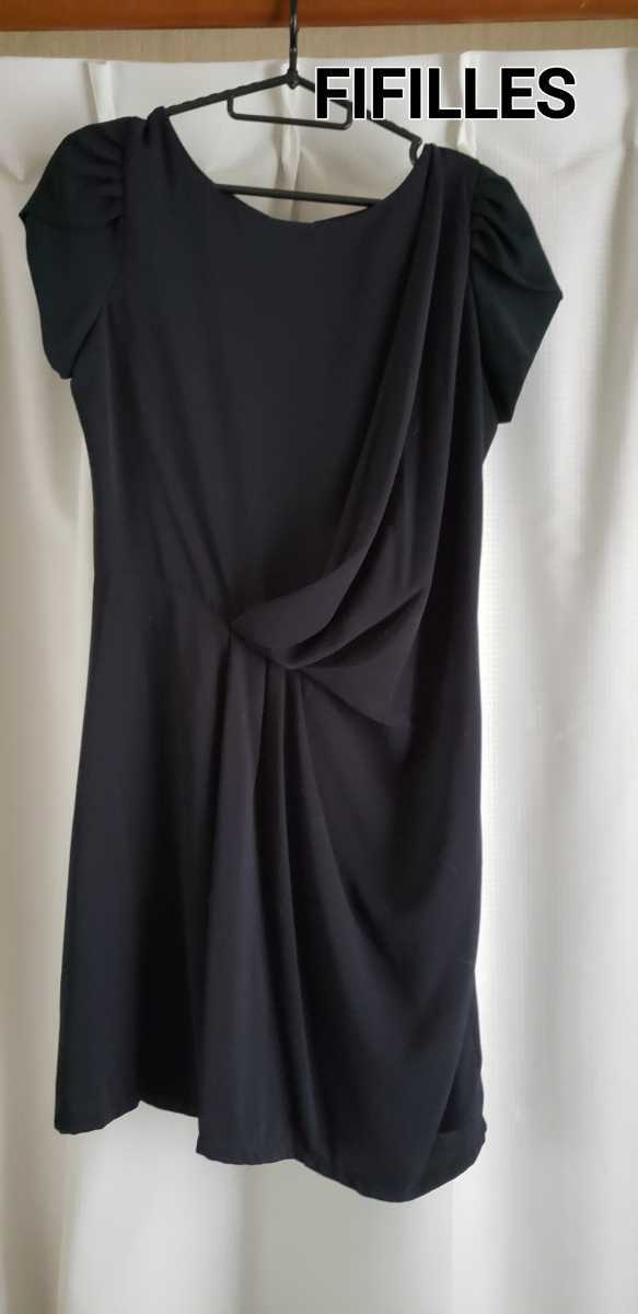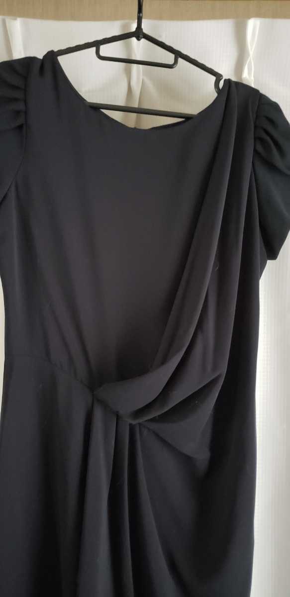 ドレープから下りた左側が少し長い。着丈は後ろ中央で採寸。