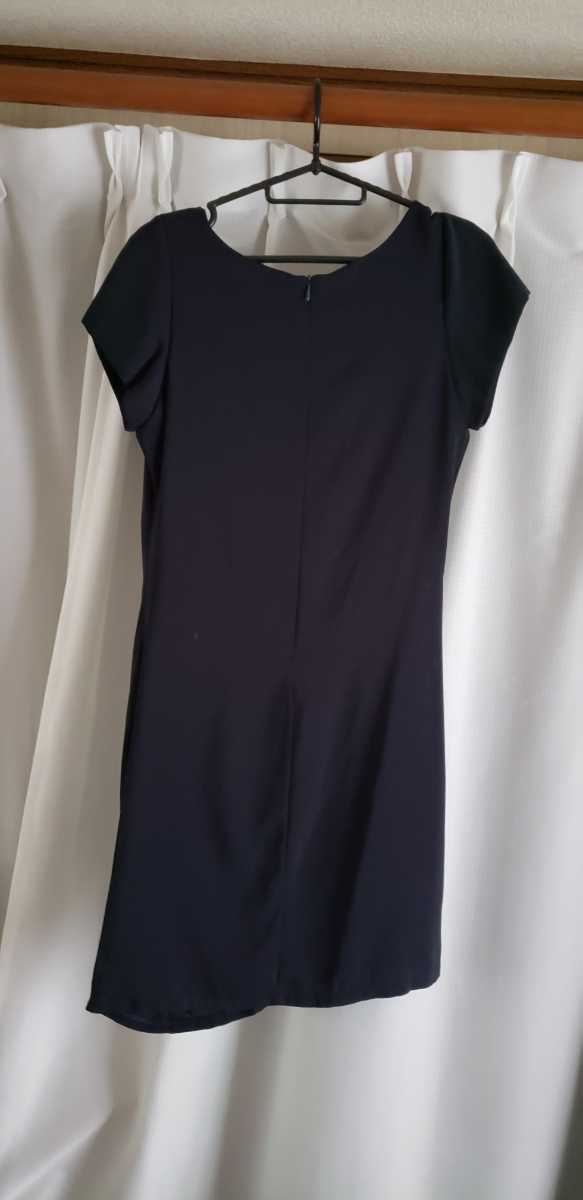 濃いネイビーのシックで可愛いワンピース。キチッと感あるデザインなので、ジャケットと組み合わせて