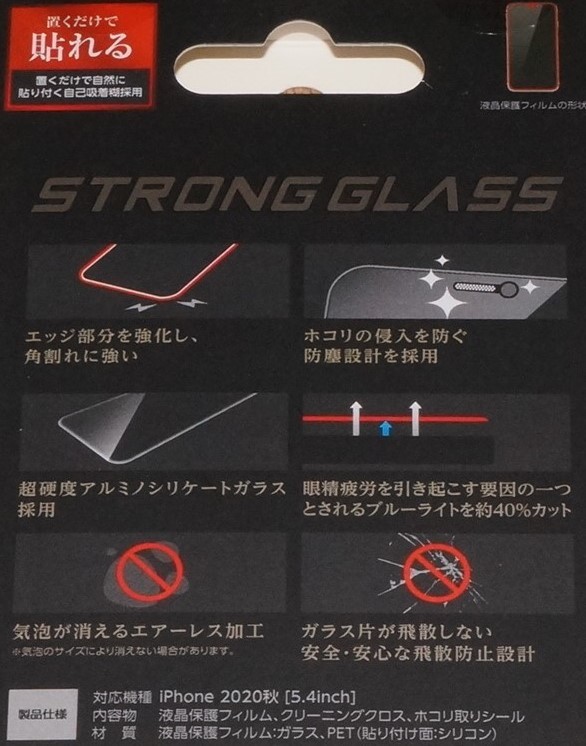 ELECOM iPhone12mini ガラスフィルム ストロング エッジ強化 ブルーライトカット 高光沢 新品・未開封です。