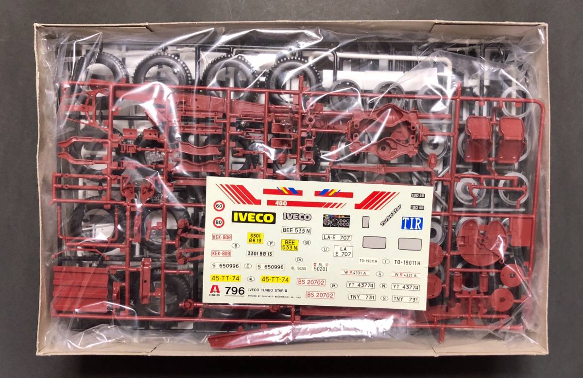 @中古絶版模型堂イタレリ1/24イベコターボスター2 IVECO TURBO-STAR IIをお譲りします。状態は箱に日焼け傷み凹み等があります。ゴムや金属類、デカールがある場合は古いものですので使えるかどうか解りません。また一通りパーツの確認はしていますが、内袋未開封品等は細かなパーツの見落としがある可能性がございます。入札後はノークレームノーリターンですので気になる点は入札前にご質問下さい。発送は定形外郵便補償無し920円かゆうパックスマホ割100サイズ(料金宅急便EAZYよりお安いです)のみです。ゆうパックご希望の場合は電話番号を取引メッセージからお知らせ下さい。また問い合わせ番号は日々の発送数が多く誤通知防止の為、スマホ割の配達予告通知のみでのお知らせとさせていただいています。こちらをご希望の場合はメールアドレスを取引メッセージからお知らせください。当店サイト(「czmokeido.3zoku.com/」で検索してください)の商品も同梱発送させていただきますが、送料は梱包サイズによって変わります。
