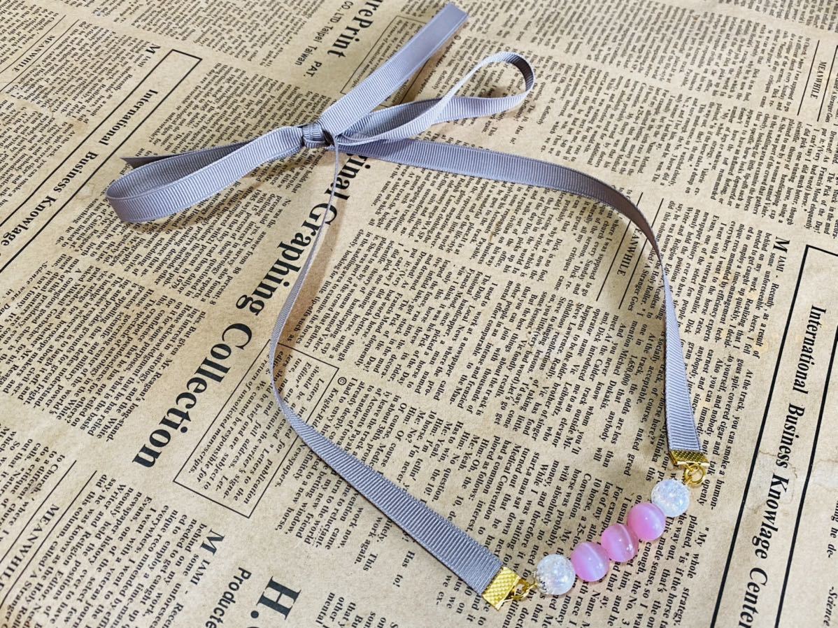 ◇世界に一本の天然石を用いたグログランリボンネックレスです。