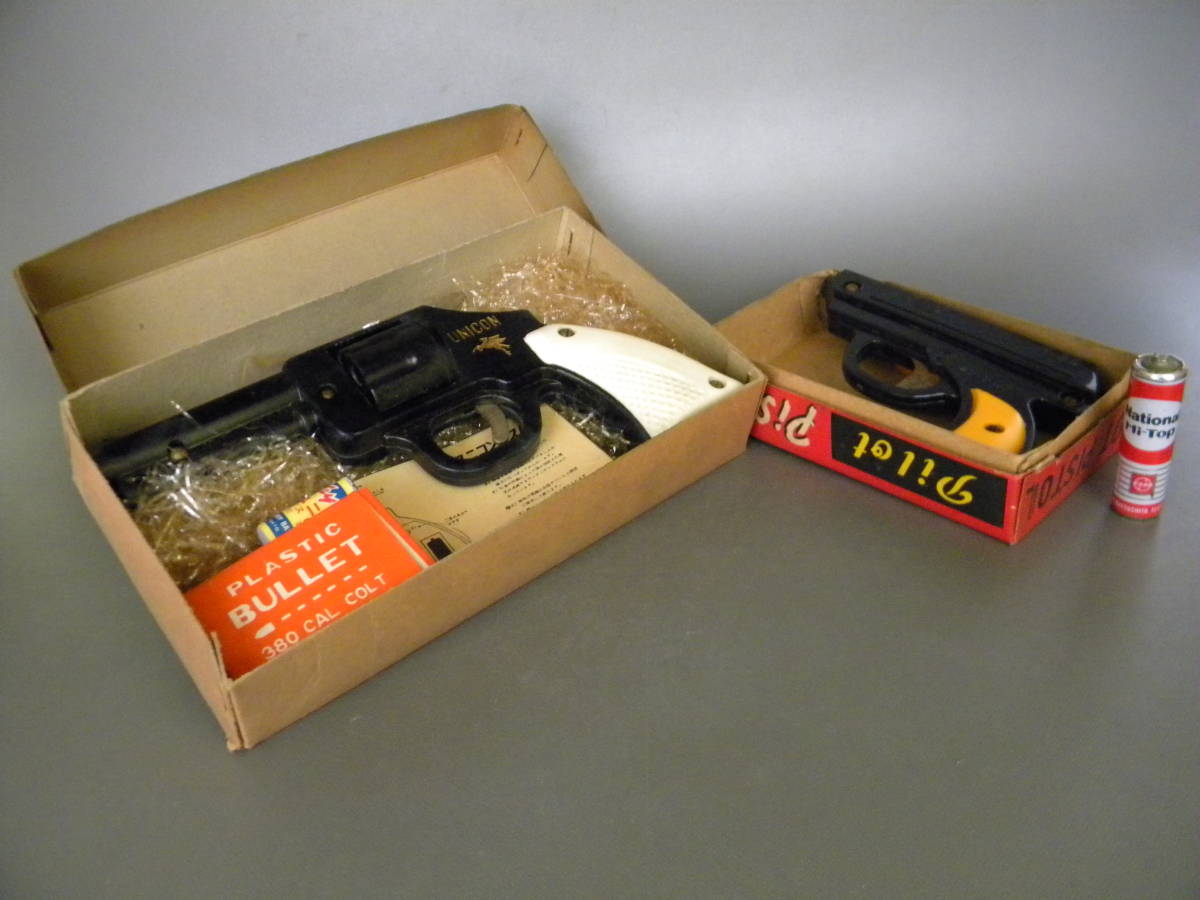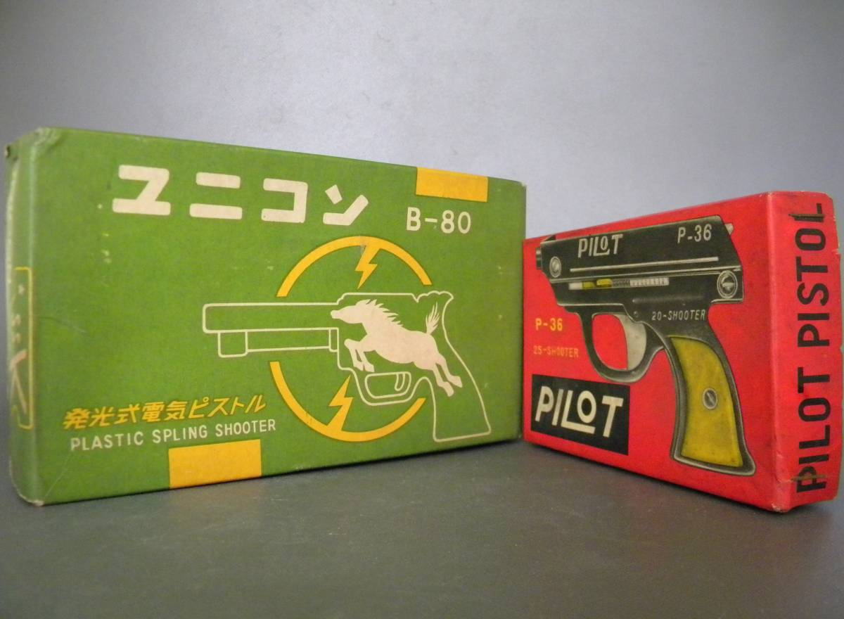 ●当時物 60`s ★★ピストル 2台 拳銃モデルガン !! 発光式電気 プラ弾 ライト付き プラ/ベークライト 「定形外/LP可」★★未使用 デッドストック品