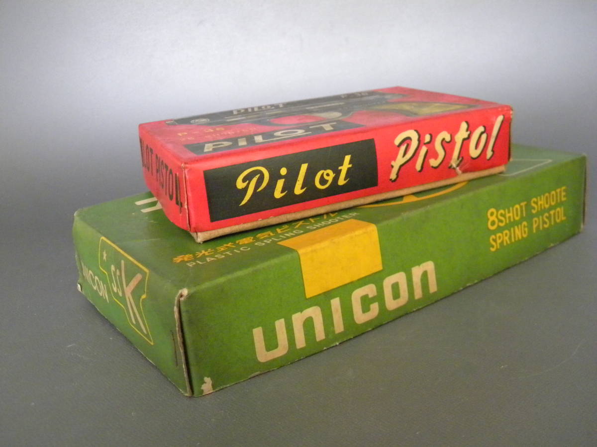 当時物 60`s ★★ピストル 2台 秘密兵器 !! プラ弾 発光式電気 ライト付き 拳銃 プラ/ベーク 「定形外/LP可」★★未使用 デッドストック品