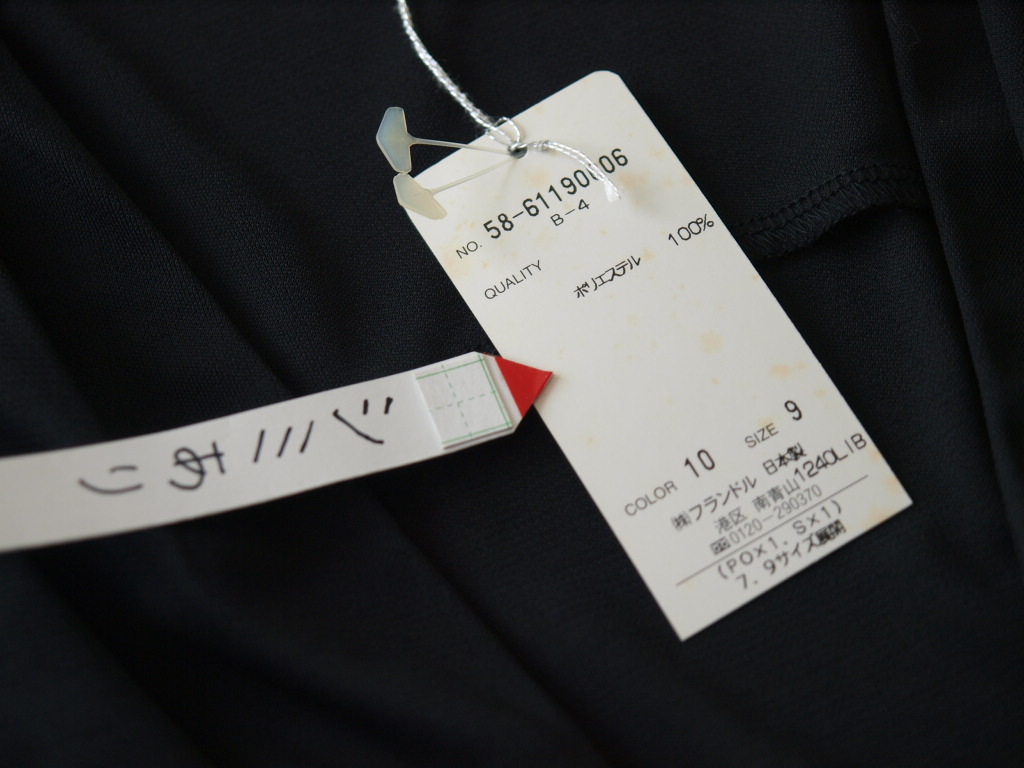 商品の補足説明(主観的な内容も含む) 紙のタグが着脱可能なクリップで留めてあるため、未使用かどうかはよくわかりませんが、特に気になる箇所はありません。 古い長期保管品で、紙のタグはシミ汚れのようになっています。 色は黒で、フォーマル系の生地かとおもいます。 |