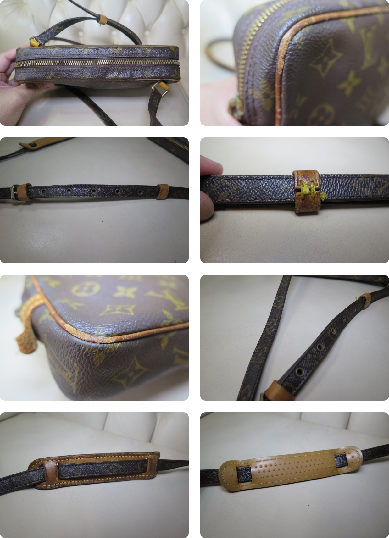 | <外側> | ショルダーの付け根のヌメ革を両側とも、私が補修しております。素材はヌメ革です。 使用感ありますが、全般的に良品です。 |