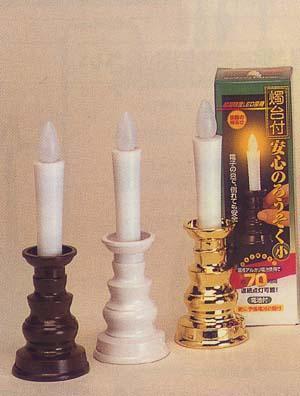 寸法:高さ14cm×底径4.3cm 色白色 材質:樹脂製備考:超高輝度LED採用単4電池2個使用(予備電池2個付き)アルカリ電池で約70時間連続点灯可能 火を使わないので、高齢者の家庭や、火気厳禁の老人ホームなどに最適です。 電池式なので配線コードが不要で倒れても安全です。超高輝度のLED採用で電池も長持ちし珠切れがしにくいです。スイッチは炎の部分を上から軽く押すだけで、点灯、消灯できます。こちらの商品は「ヤフーショッピング」と「ヤフオク」で同時出品しております。