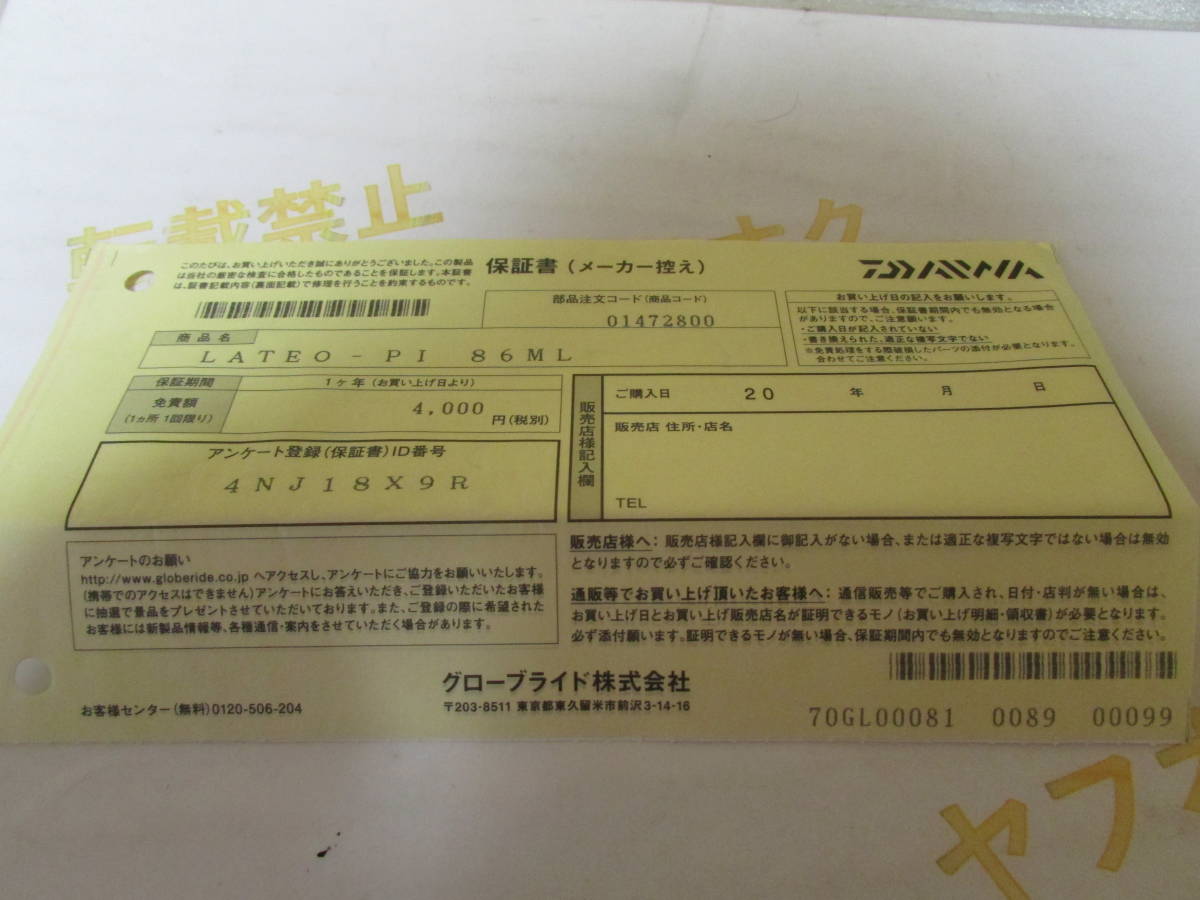 ダイワ ラテオ PI 86ML 保証書のみ 商品コード01472800 即決