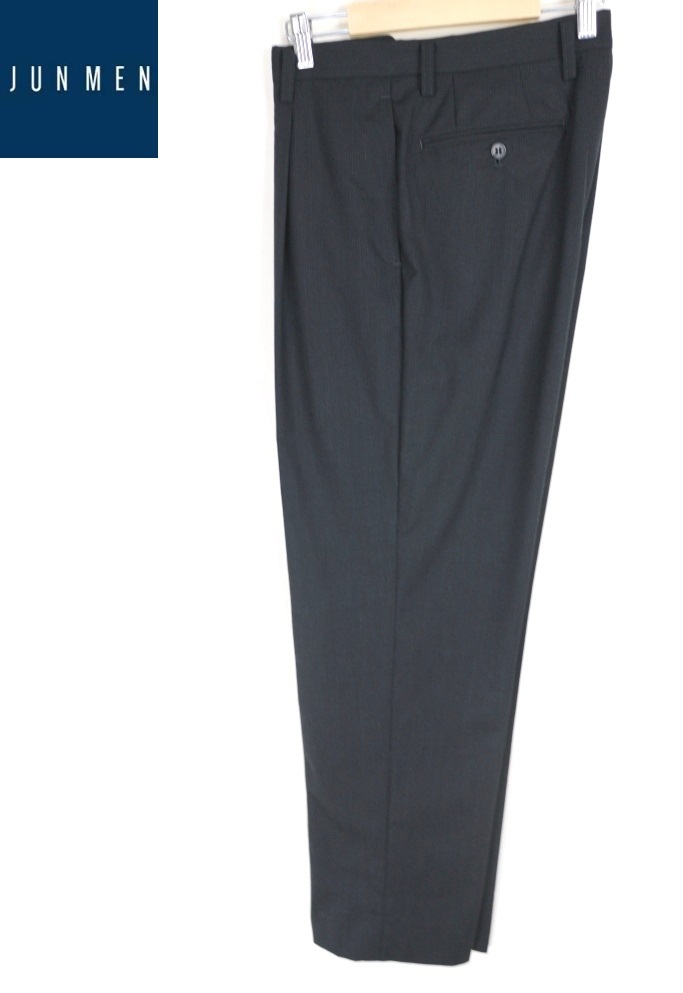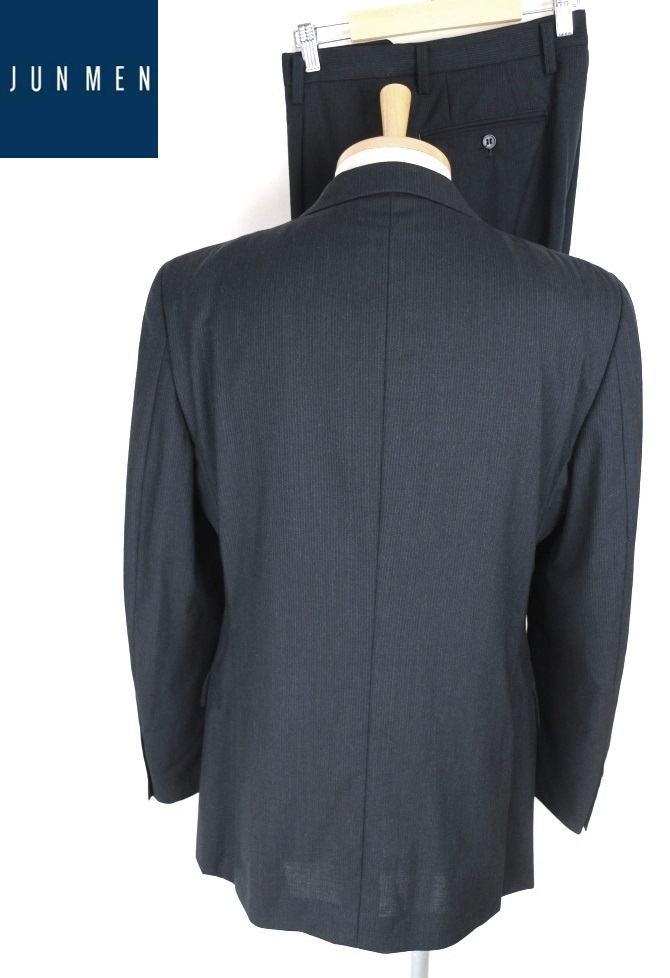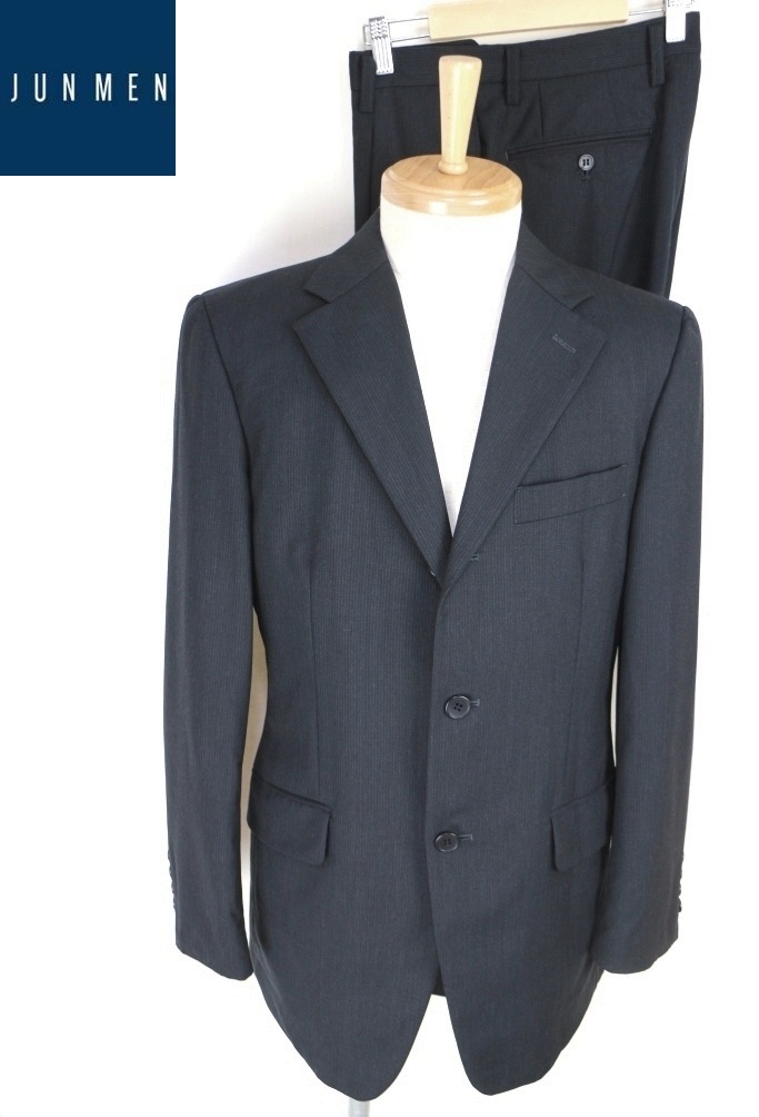 ■超美品■日本製■クリーニング済■JUNMEN■春夏 段返り3つボタンスーツ M チャコールグレー ストライプ 黒灰 ジュンメン