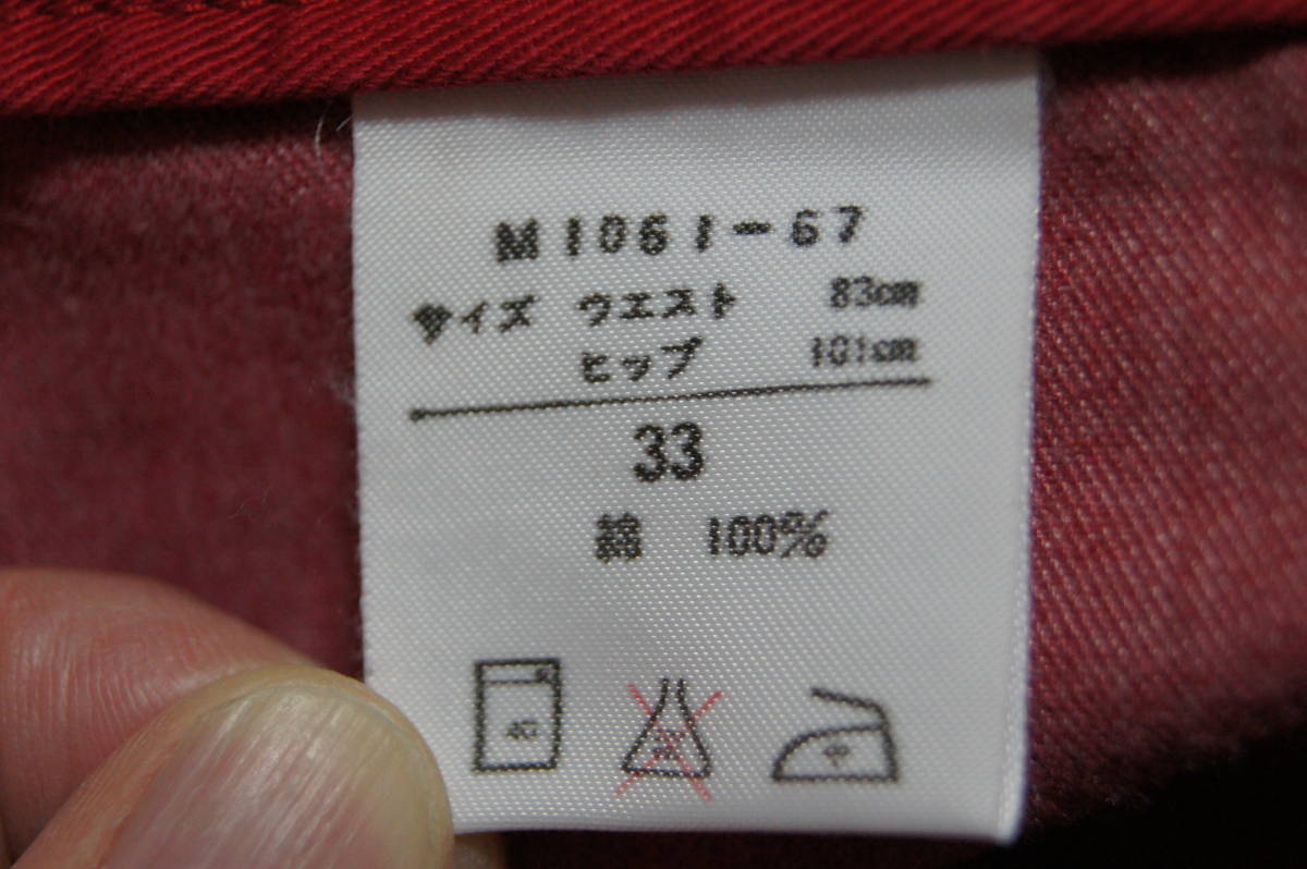 <商品状態のランク> Cランク <表示サイズ> W33 ウエスト83cm ヒップ101cm <素材> 綿100% <商品説明・コメント> 色はレッド系 5ポケットタイプ ノークレーム、ノーリターンでお願いします 詳細サイズ(平置きで計測)をよく確認して入札してください |