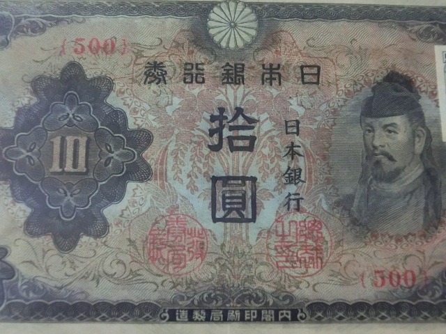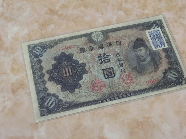 改正不換紙幣10円 3次10円 500組の証紙付で極美品です。