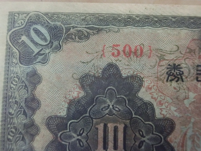 ★ 改正不換紙幣10円 3次10円 500組 証紙付 極美品 ★ No.500