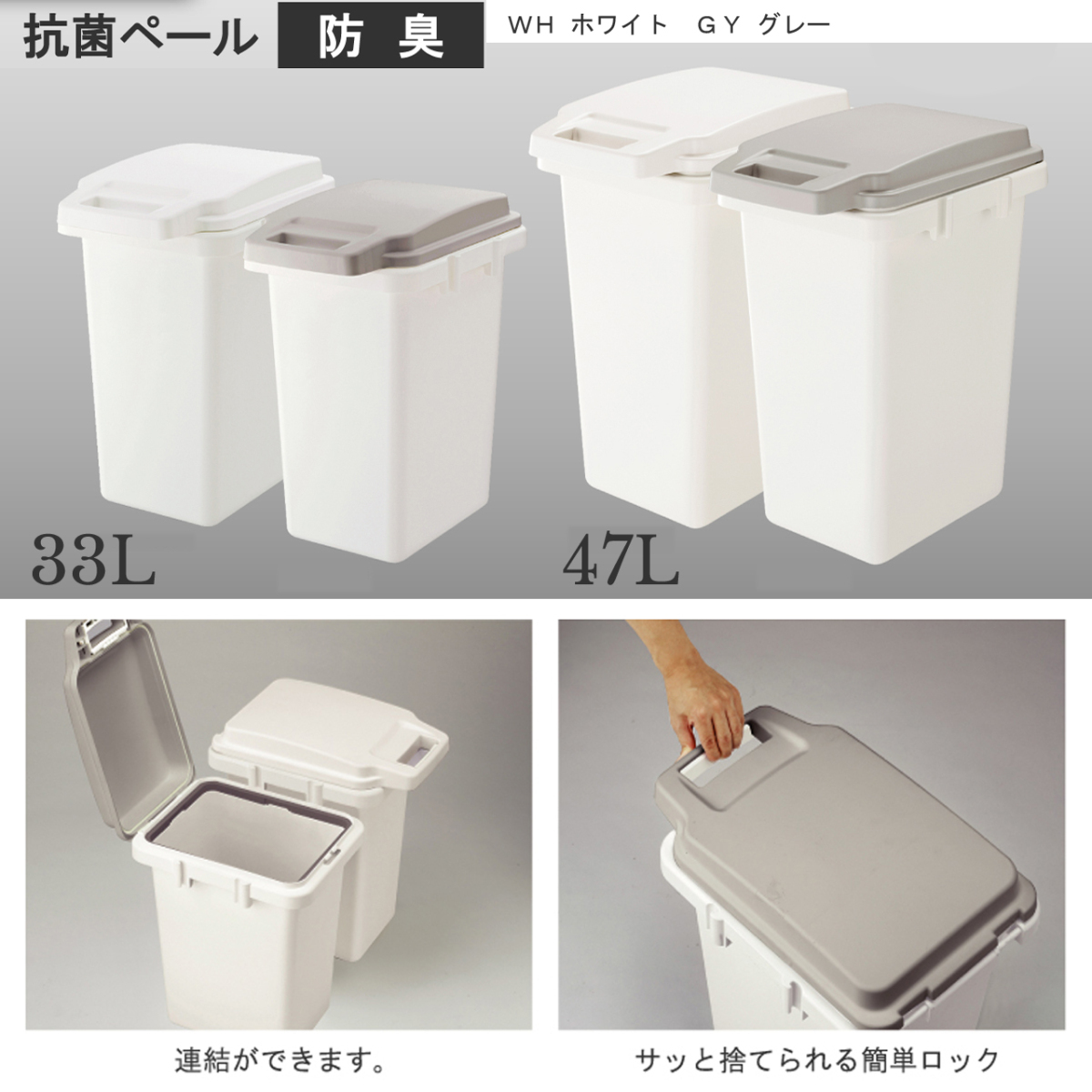 | 商品名 | 47L 抗菌ペール 防臭 ダストボックス グレー ゴミ箱 四角 フタ付 おしゃれ 北 日本製 AZ-RSD-75GY |