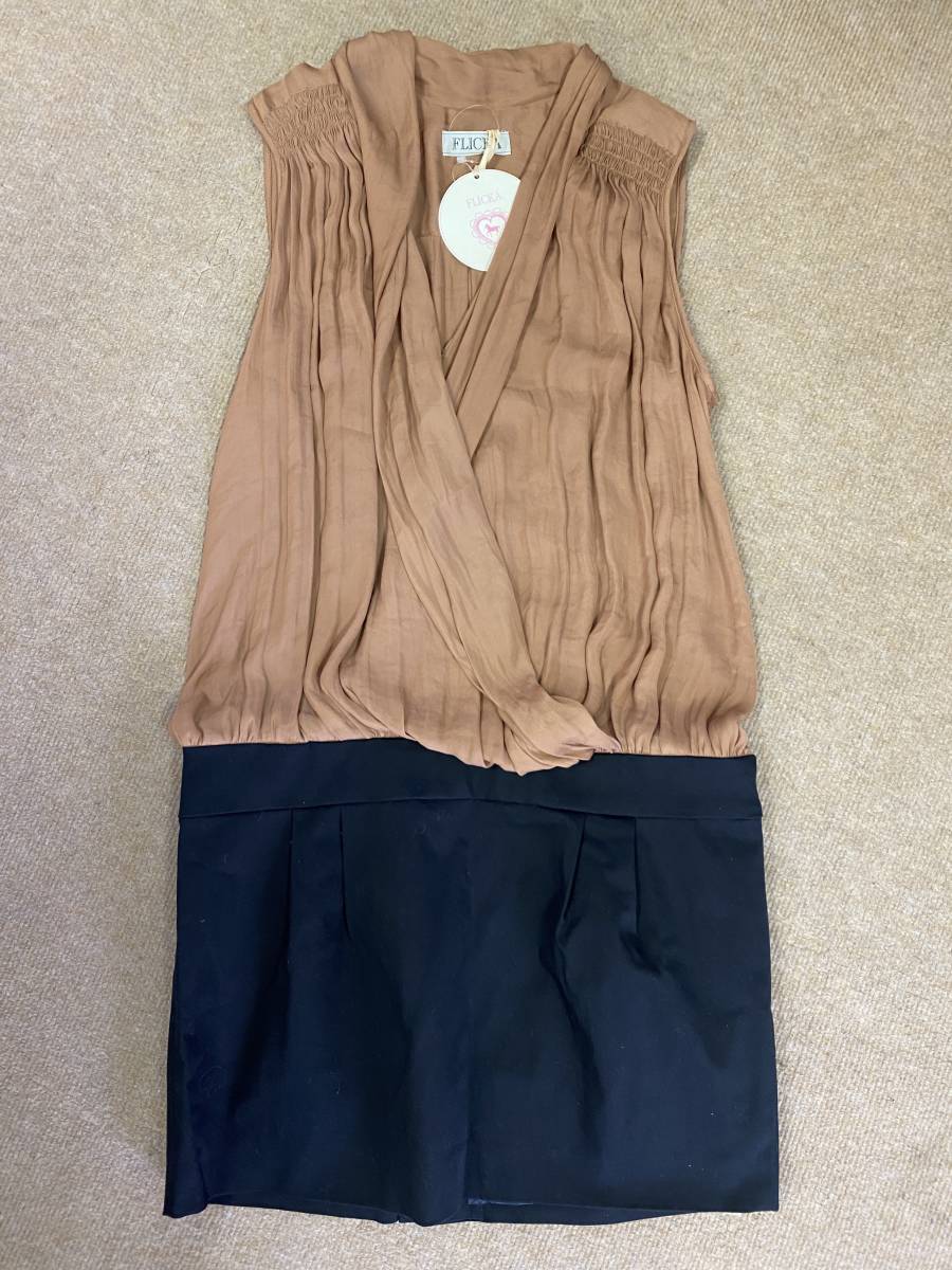 【商品説明】 | FLICKA(フリッカ)のドッキングワンピースです。 ブラウン×ブラックの落ち着いた上品なデザイン。 一枚でコーディネートが完成します。 普段使いからお出かけスタイルまで様々な場面で活躍してくれます。 シンプルなデザインで流行に左右されず長くお使い頂けます。 一点限りの商品ですのでこの機会にぜひお買い求めください。 <仕様>※平置き実寸。素人採寸の為、多少の誤差はご容赦ください。 着丈:82cm ※折り畳んでの発送となります。 ※色や素材感等に注意して撮影しておりますが、カメラの特性、ご覧になられているPCやスマホによっては色味や質感が異なって見える場合がございます。 ※店頭販売もしておりますので、店頭で売れた場合はオークションを取り消しさせていただく場合があります。 |