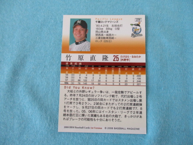 ★BBM 2008★1st Version〔279 竹原直隆 千葉ロッテマリーンズ〕トレカ♪