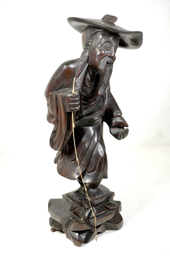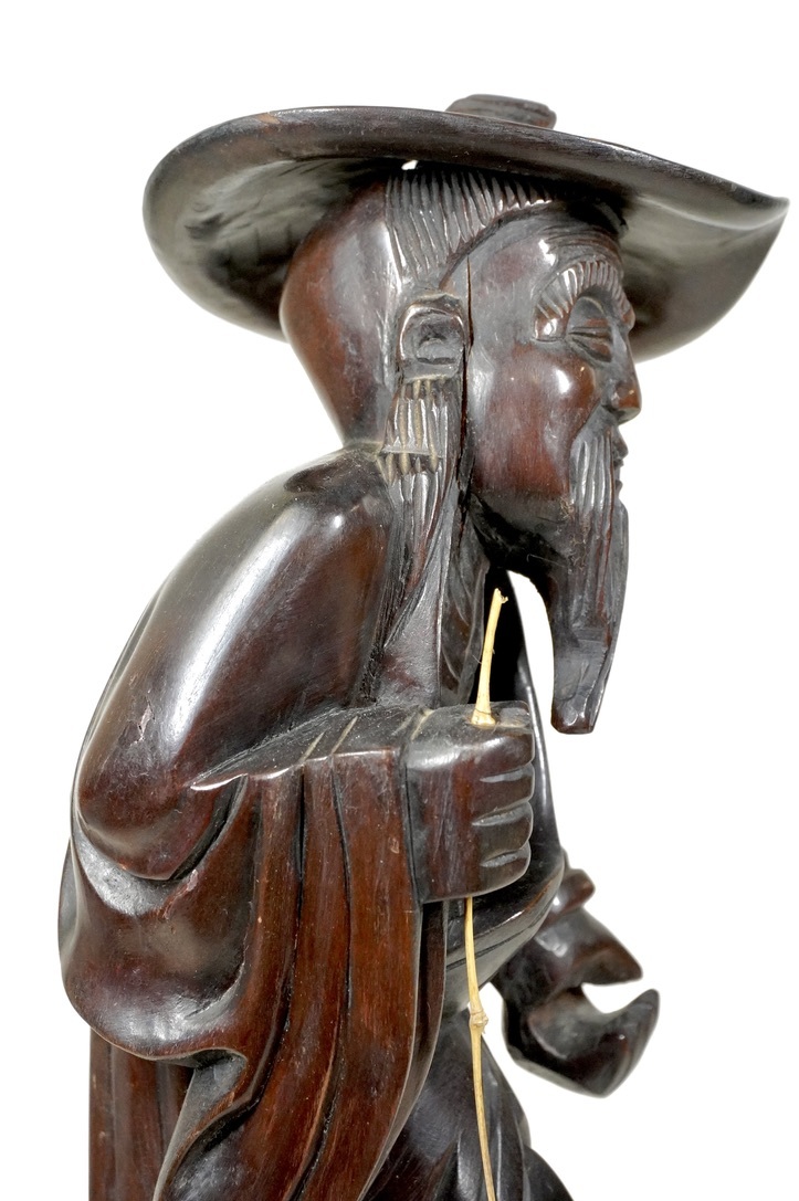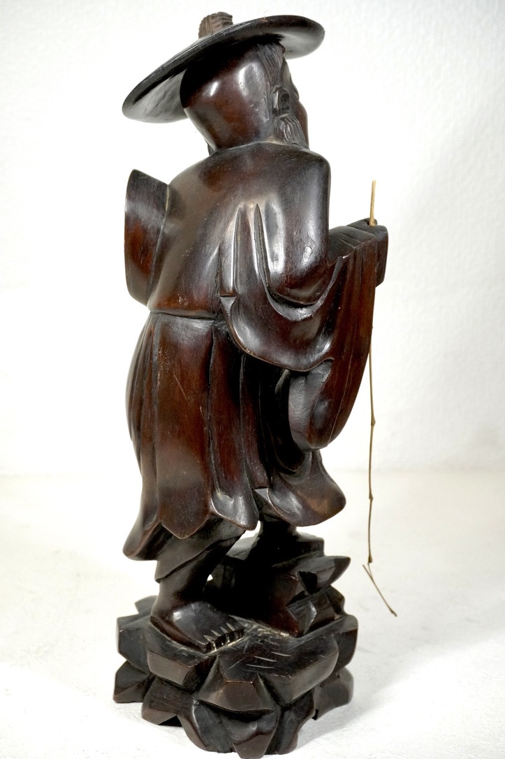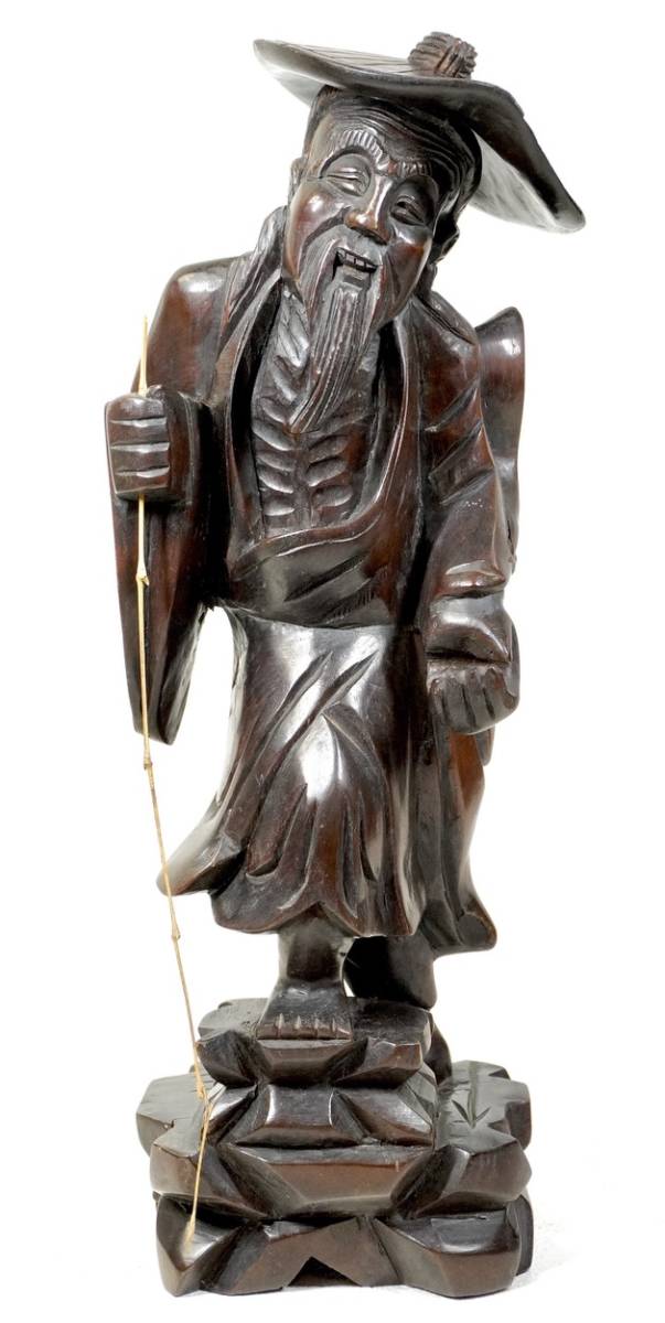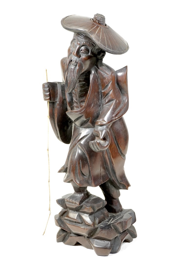 中国古美術 唐物  一刀彫太公望像 高さ30cm! 一本の木から彫刻し作られた逸品! 経年のヒビありますが素晴らしい味わい KNA