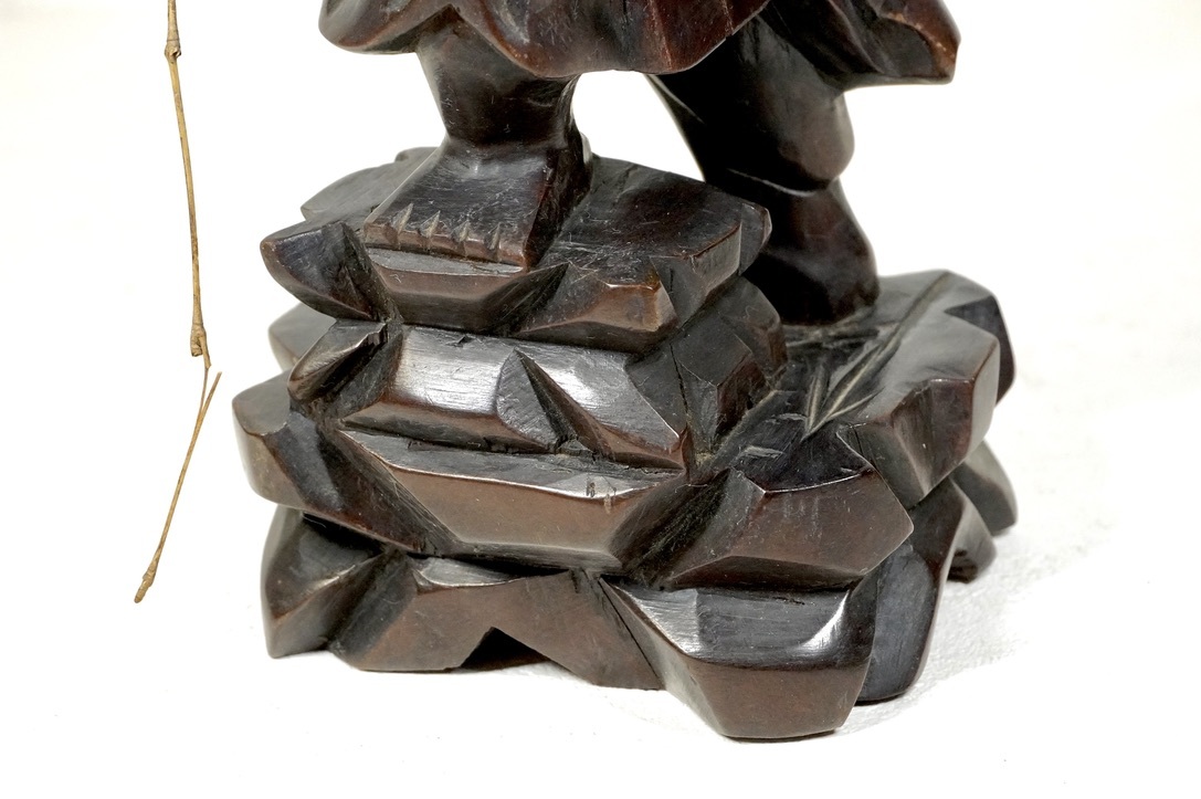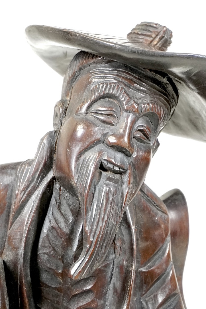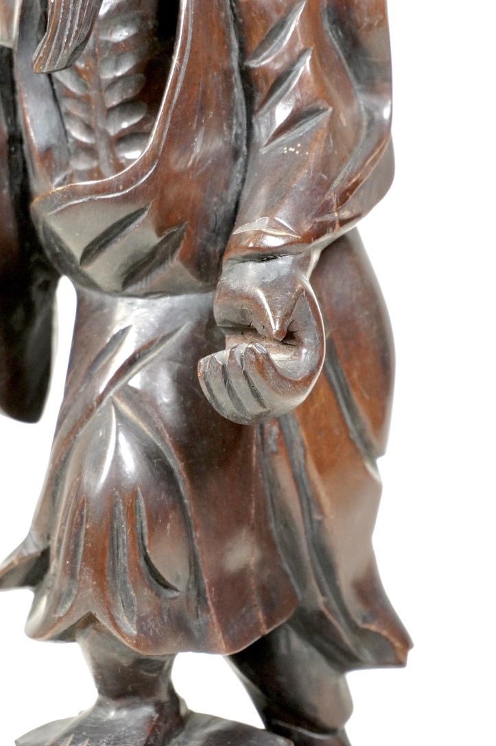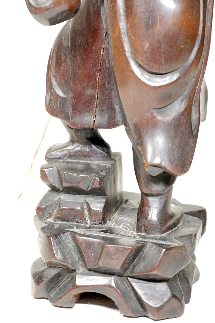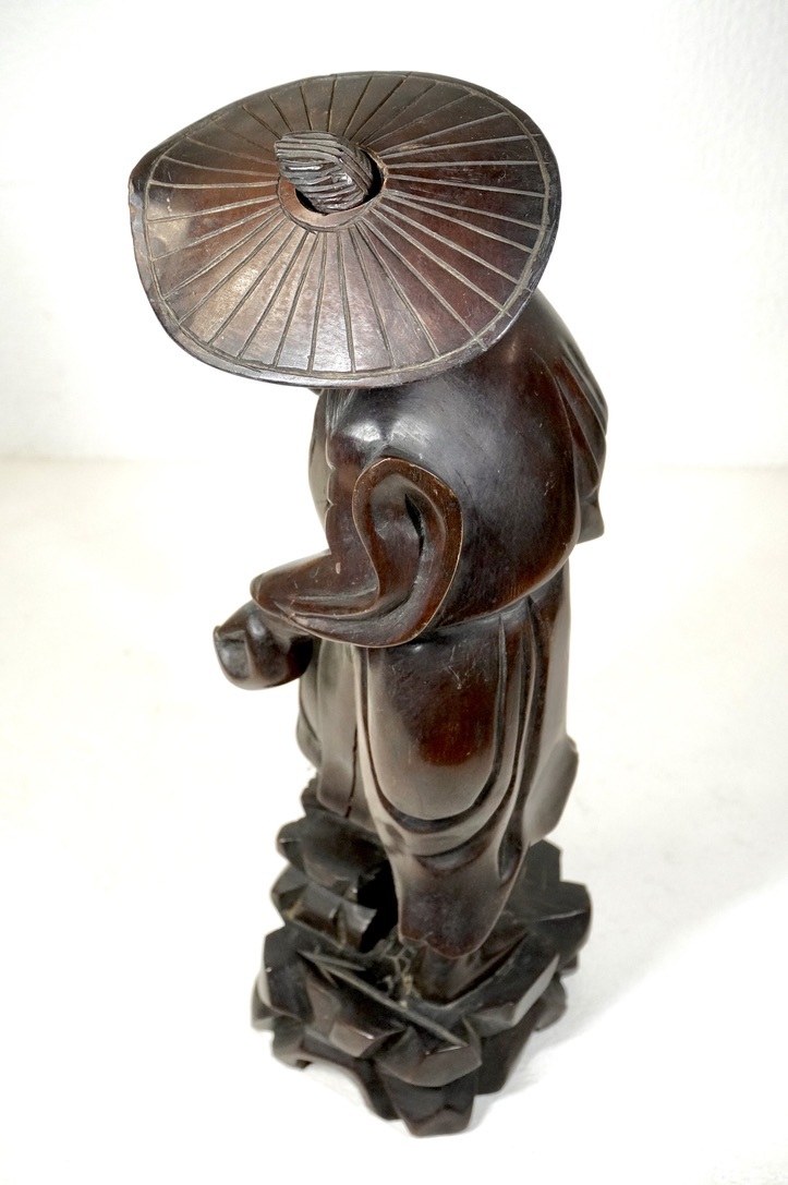 中国古美術 唐物  一刀彫太公望像 高さ30cm! 一本の木から彫刻し作られた逸品! 経年のヒビありますが素晴らしい味わい KNA