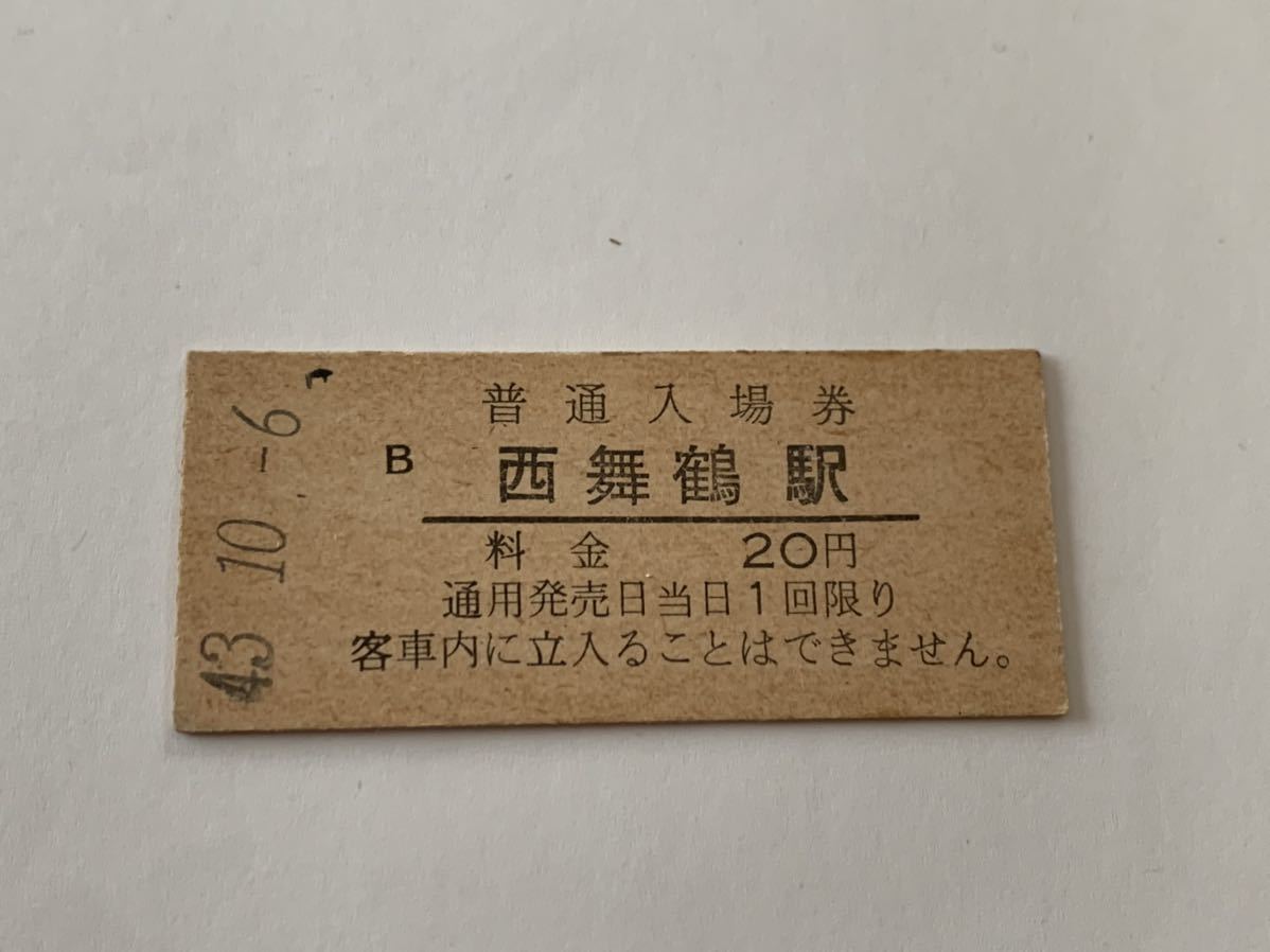 こちらは古い切符 普通入場券 西舞鶴駅 昭和43年10月6日 硬券です。
